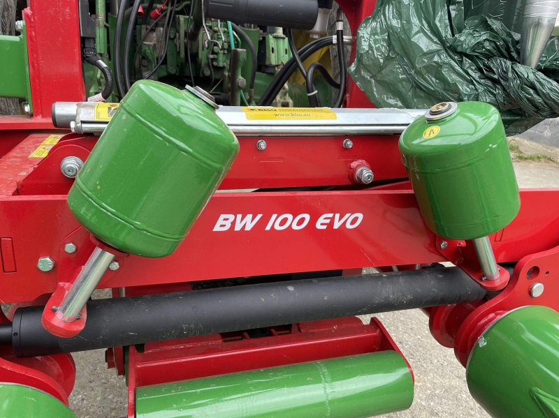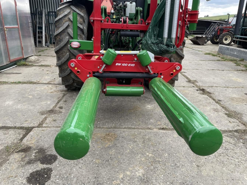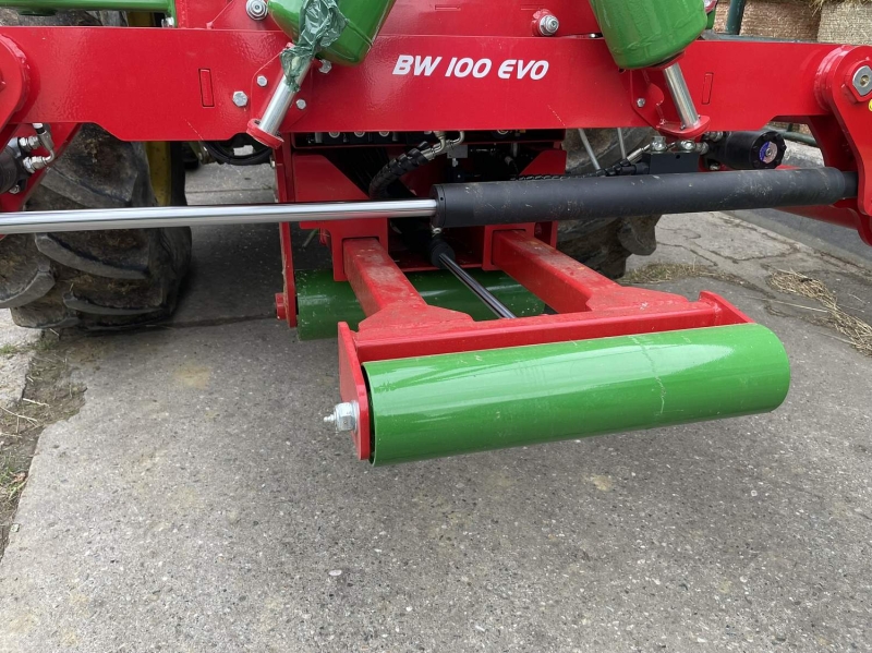 Balička BW 100 EVO je vybavená systémom samonakladania, ktorý umožňuje rýchle naloženie balíka bez potreby ďalšieho zariadenia. Elektronické riadenie procesu balenia zabezpečuje presné a rovnomerné obtočenie fóliou, pričom automatické odrezanie fólie šetrí čas aj materiál. Vertikálne vykladanie balíka po zabalení zjednodušuje manipuláciu a zvyšuje bezpečnosť práce.